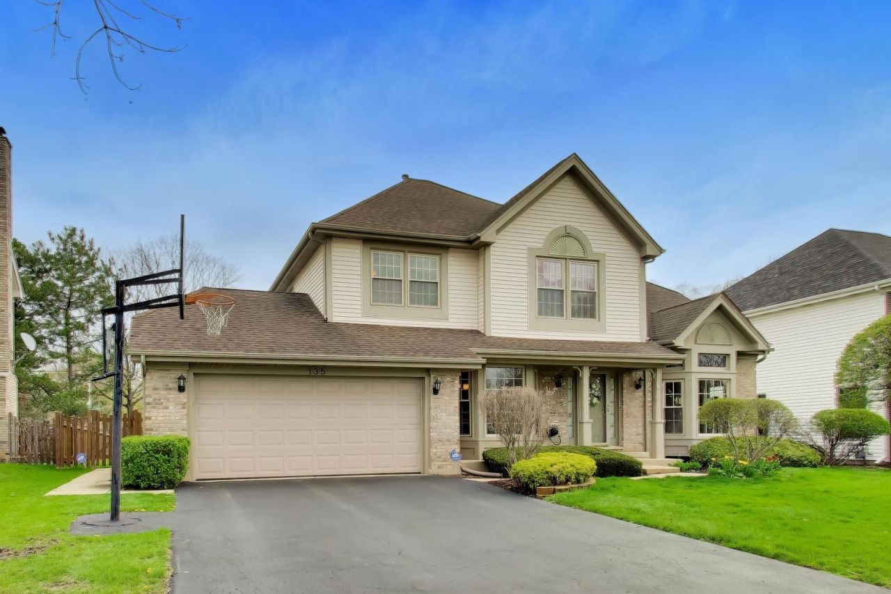 Welcome to 135 Corsaire Lane, the original owner's Cherbourg model in the highly desirable Park St. Claire subdivision within award-winning School Districts 54 and 211. This beautifully maintained home is flooded with natural light and features 4 bedrooms, 2.5 bathrooms, a full finished basement with a wet bar, and a 2-car garage. The white kitchen offers stainless steel appliances, a movable butcher block, and a breakfast bar that opens to a spacious family room anchored by a stunning gas fireplace, while the primary suite boasts vaulted ceilings, dual closets including a walk-in, and a well-appointed en-suite bath with a dual vanity, soaking tub, and separate shower. Interior highlights include hardwood floors throughout the main level, staircase, and upper hallway, along with a fully enclosed basement office, plus a versatile combo pool table/ping-pong table included in the sale. Step outside to a beautifully landscaped backyard with a spacious concrete patio with a firepit, perfect for entertaining, while an attached shed behind the garage provides additional storage and the garage features a built-in workbench. Major updates include the furnace, water heater, and HVAC (2015-2016), with roof, siding, and windows replaced in 2003. Ideally located near I-90 and I-290 with easy access to shopping, dining, and entertainment at Woodfield Mall, and served by award-winning Fairview Elementary and James B. Conant High School. Please note the dining room chandelier is not included in the sale. Don't miss this opportunity to call Park St. Claire, and this beautiful home, your own!
